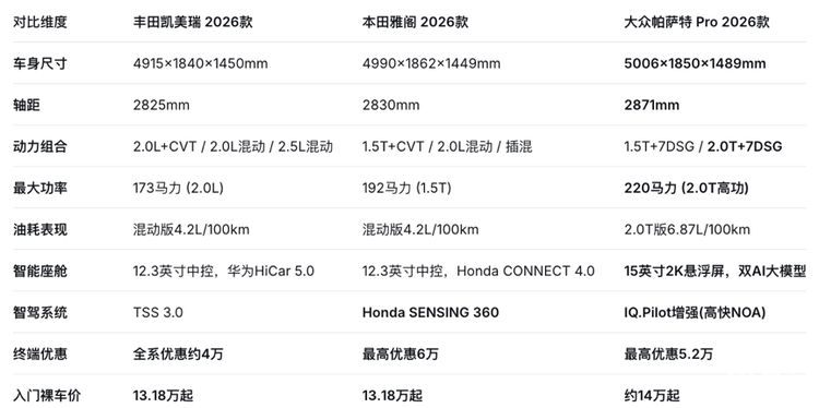 合资B级车:凯美瑞/雅阁/帕萨特,还能守住阵地吗? 2026/03/02 · 买卖车讯