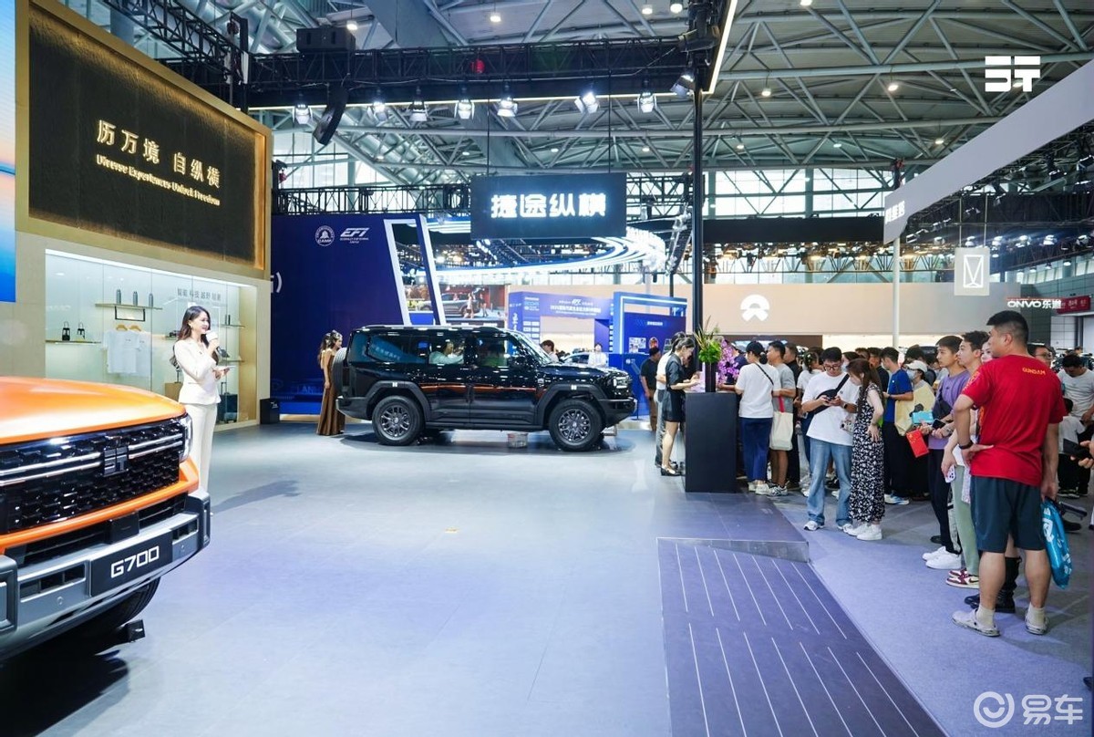 安徽首秀受热捧:区域市场认可度飙升在国庆前夕的安徽新能源汽车展上,捷途纵横G700完成区域首发,迅速成为展会焦点。现场观众围绕车辆近距离观摩,对其1.2米泡水仍能启动的防水性能、4.6秒破百的动力参数及豪华座舱配置表现出浓厚兴趣,咨询“三把锁如何操作”“高原制氧系统效果”等问题的客户络绎不绝。