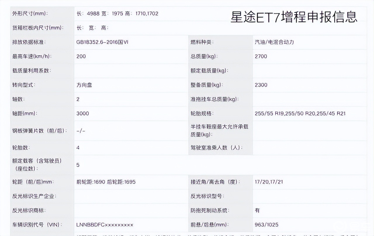 车尾同样以贯穿式尾灯组呼应前脸,增程版车型采用了隐藏式排气布局。其车身尺寸长宽高分别为4988/1975/1710毫米,轴距为3000毫米。这是一个非常典型的“大五座”SUV体格,与同品牌的星纪元ET相比,车身长度有所增加,预示着其乘坐与载物空间可能更为充裕。此外,申报图中车顶清晰的激光雷达装置以及车身多处的传感器,也几乎明示了高阶智能驾驶辅助系统将成为其核心科技配置。