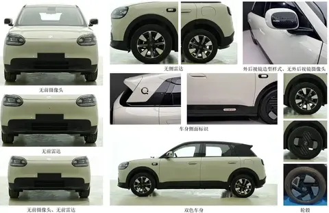 车身在门框、包围等细节处进行了黑化处理,增添了时尚潮流感。车尾设计与车头呼应,采用近似方盒子的造型,在提升视觉个性的同时也有利于保障车内空间。新车提供丰富的个性化选装,包括双色车身、多种轮圈样式、不同造型的外后视镜以及侧面标识等。部分传感器如前雷达、摄像头等也可根据需求选择装配。