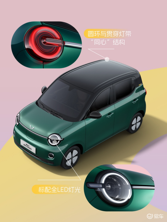 而从车身侧面来看,此次公布的全新宏光MINIEV采用了黑色悬浮车顶设计,上下撞色的搭配更显潮流感,四辐式花瓣轮毂则透着可爱的Q萌气质。而且全新宏光MINIEV就连配色名称也充满了萌趣风格,三款配色分别命名为灰萌萌、绿悠悠和白绒绒。