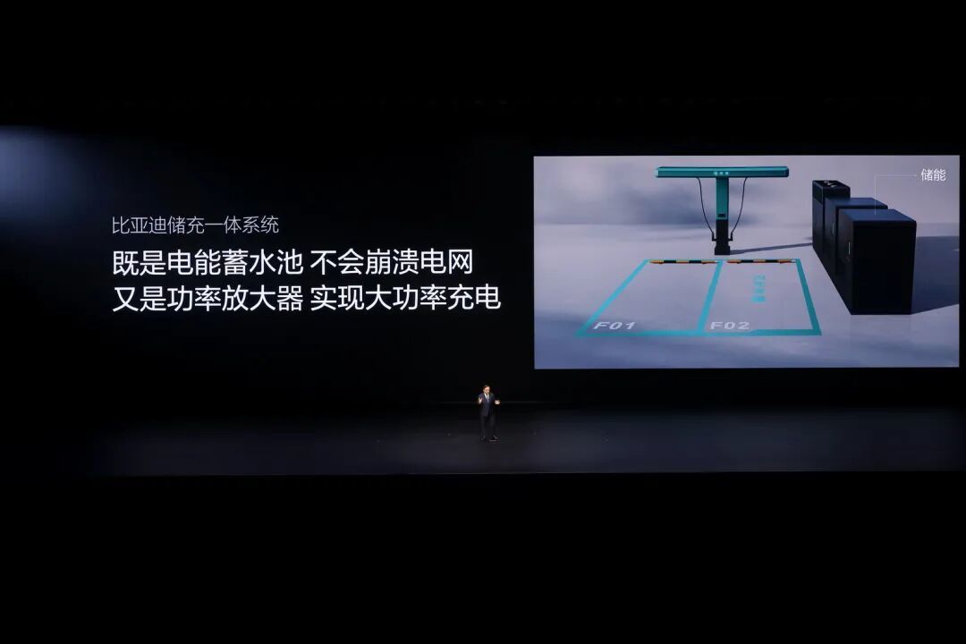 为了让闪充技术实现规模化落地,比亚迪并未采用单一的自建模式,而是推出了自建+第三方合作的双模式布局。除了打造集补能、消费于一体的自建闪充站,比亚迪还计划在现有第三方充电桩旁铺设储能站,将电桩闲置时的用电配额储存起来,通过储能系统的调配,让普通充电桩直接升级为闪充桩。这一模式既无需第三方充电站额外投入,还能借助比亚迪的用户基数为其引流,实现车企与充电运营商的合作共赢,也让闪充网络的铺设效率大幅提升。