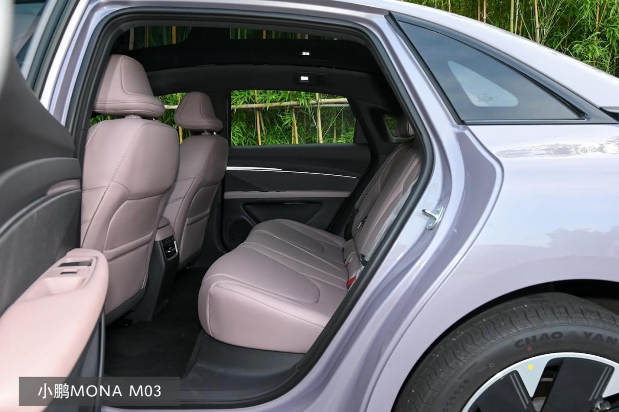 从空间上来看吧,小鹏M03虽然是A级车,但长度与轴距却以4780mm、2815mm的数据占有明显同级优势。它的二排几乎就是B级车的体验,就算是放上儿童座椅,孩子头部空间也照样宽裕。