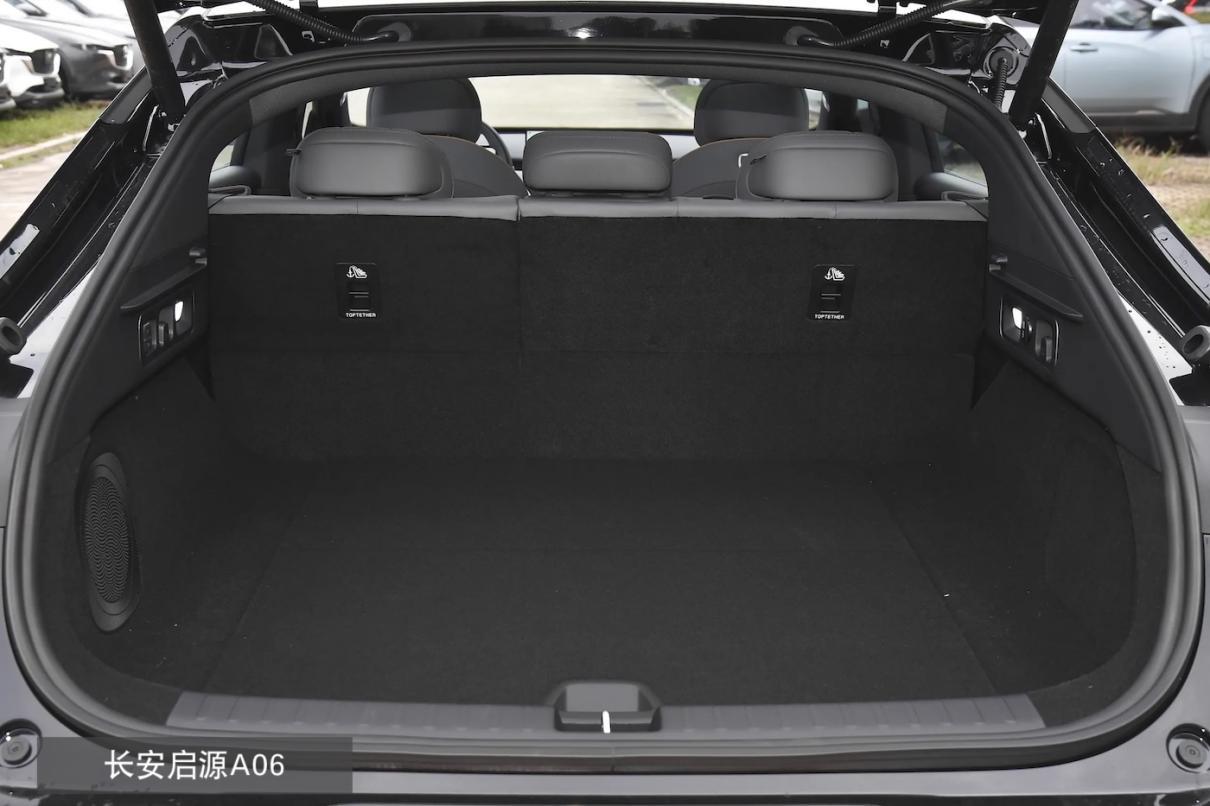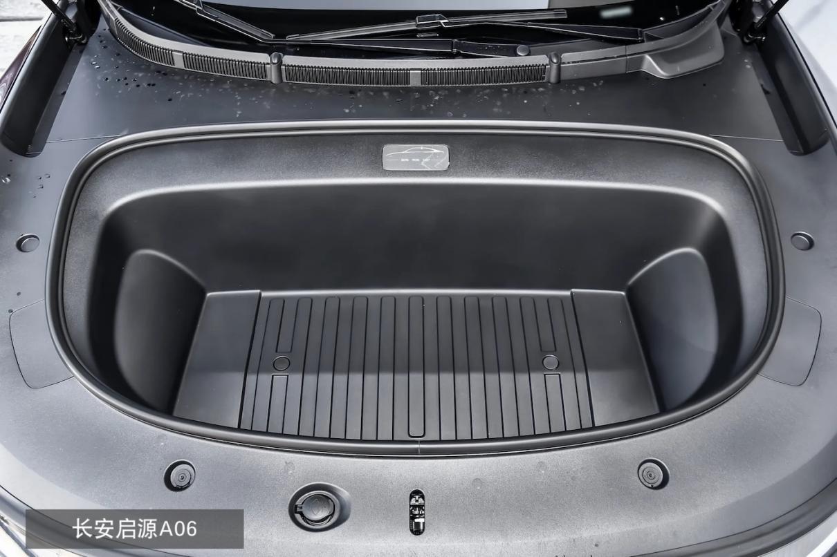 长安启源A06这边更是有656L的标准容积,除了同样带电动记忆,它还有81L隐藏储物,露营时候能放些零散或是易损的小件儿;同时,车头还多了一个108L的电动前备厢,不仅能为后备厢省出更多放大件的空间,也能实现干湿分离,采点带泥的果蔬、带水的鲜货,都能放这儿。