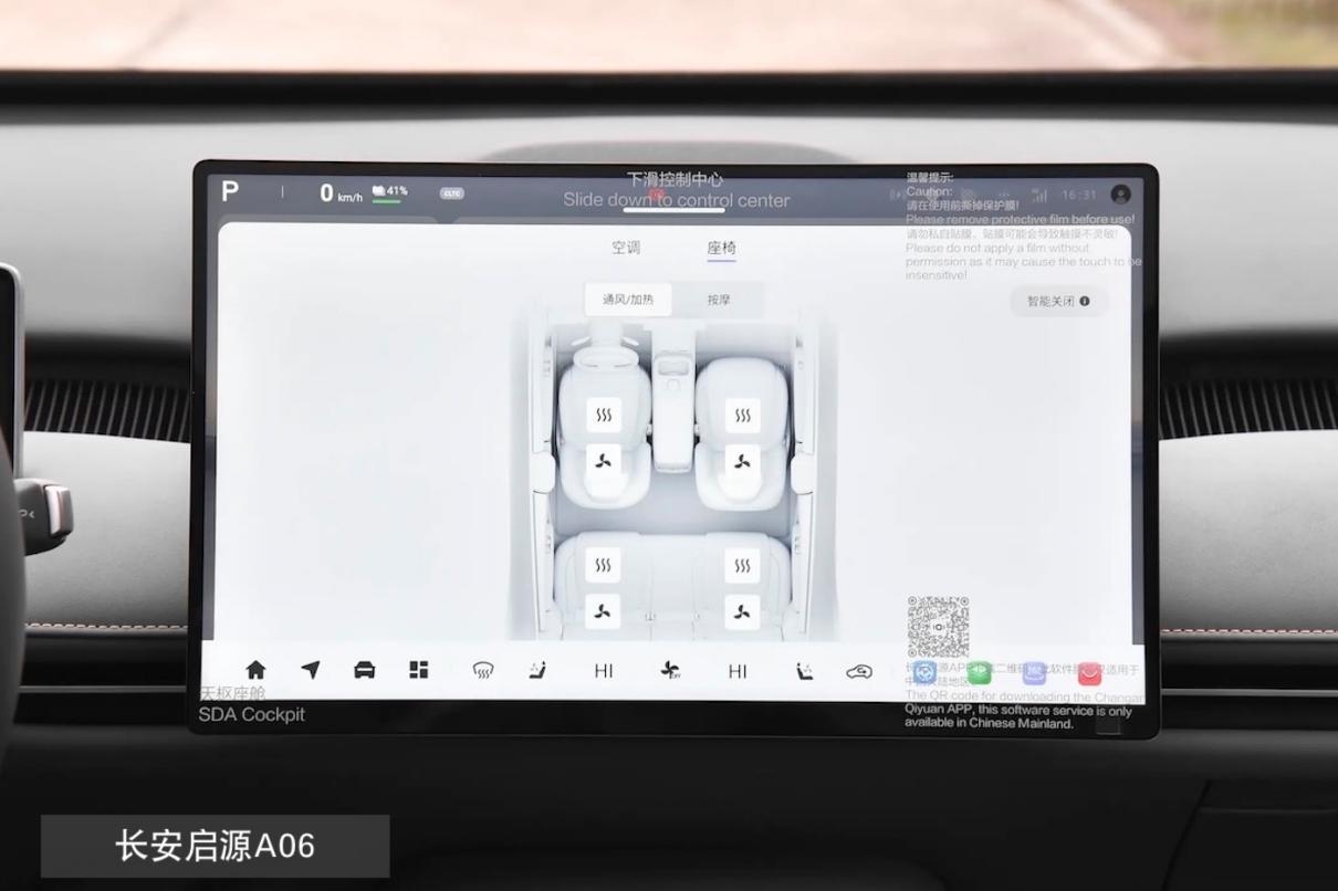 长安启源A06这边更是主副驾都带电动腰托、前后排都支持加热/通风/按摩与位置记忆,再加上后排的靠背也是电动可调,真是遇到清明之类的假期,堵久了也不易疲倦。对了,这车可是有智能冷暖箱跟20扬声器天枢音响,天气热了喝个凉的、堵太久了追个剧,也都可以实现。