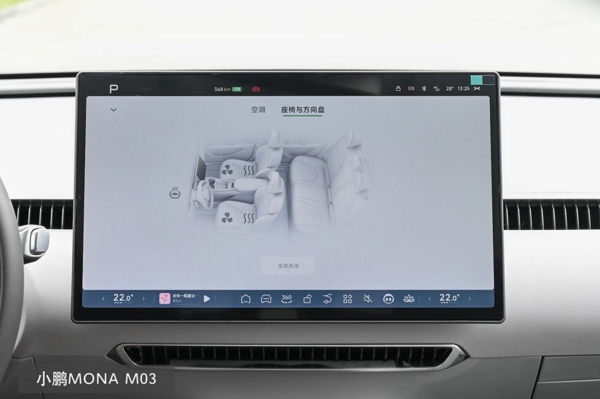 从舒适体验来说,小鹏M03与长安启源A06都有尺寸可观的全景天窗,并且布局了双温区空调、主动交互的256色氛围灯,更在前排给到了加热/通风/记忆,四季出游都是舒舒服服。关键是,小鹏M03这级别已经给了主驾按摩,春游去热门景点堵路上,开久了也不累。