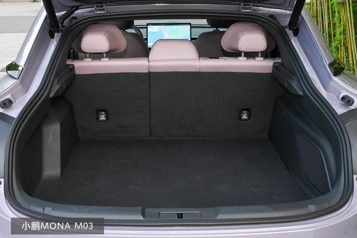 小鹏M03有600L的后备厢容积,加上采用了带记忆的电动尾门,应该说放上两三个拉杆箱,也能有一些余量来放更多户外装备。