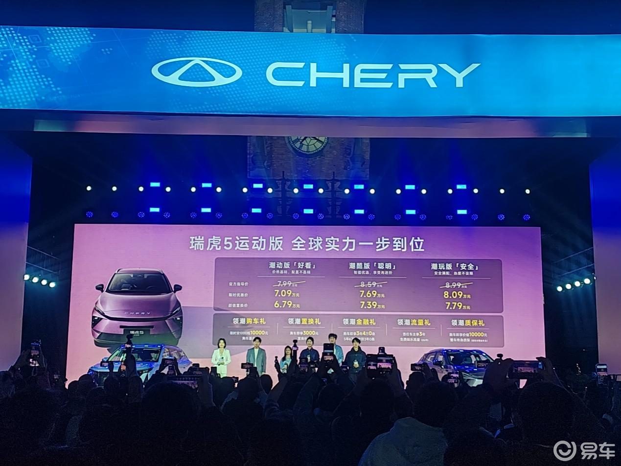瑞虎5运动版同样推出三款配置车型,含权益及超值置换优惠后售价分别为潮动版,售价6.79万元、潮酷版,售价7.39万元、潮玩版,售价7.79万元。