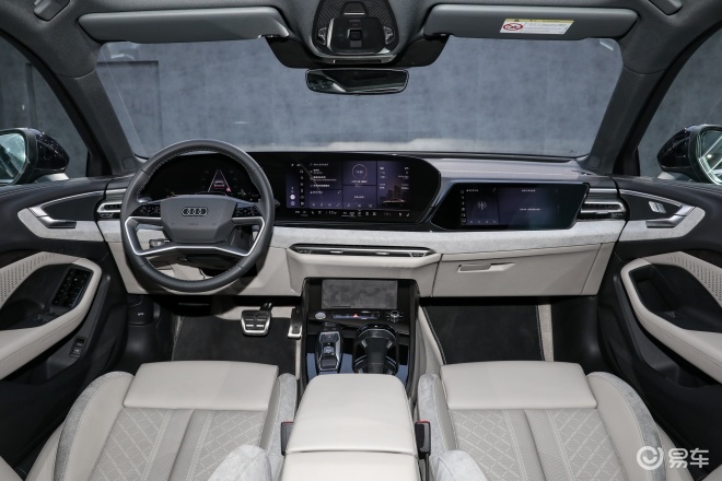 内饰方面,新车座舱区域使用超薄OLED技术的主驾仪表显示与MMI的曲面大连屏。此外,新车还标配副驾屏,是针对副驾驶舱乘客数字化体验的补充,被巧妙地整合于仪表板内。