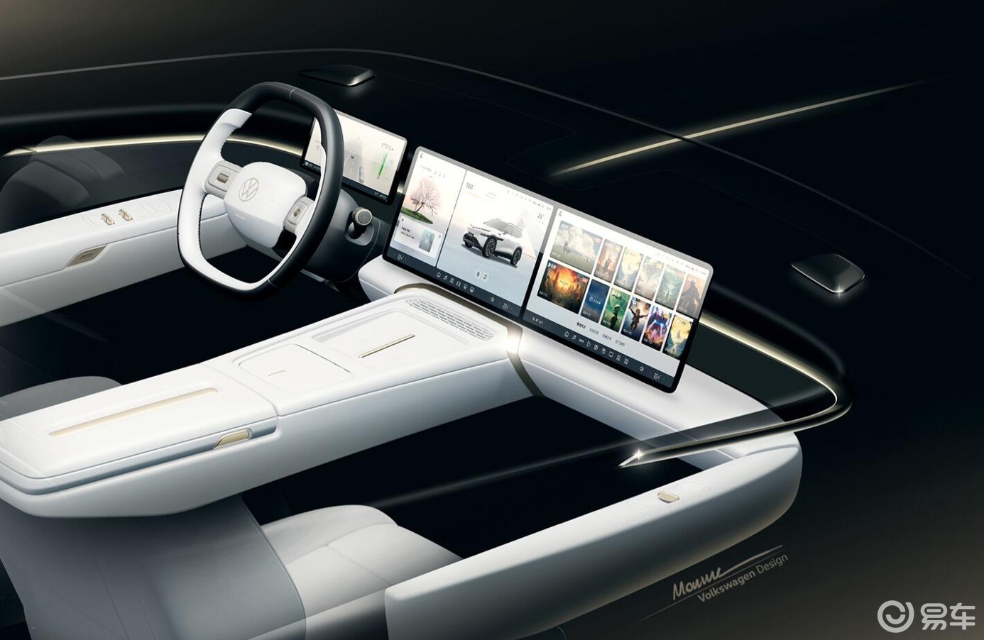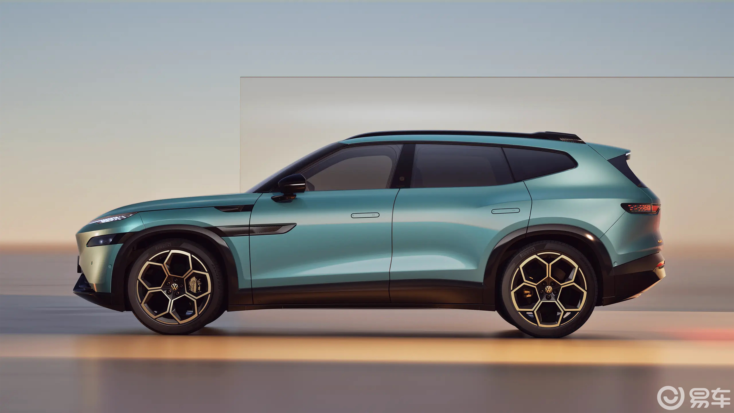 车身尺寸长宽高分别为5000/1954/1688mm,轴距3030mm,相比小鹏G9(长宽高4891/1937/1670mm,轴距2998mm)更大一些,也要大过小米YU7、智界R7等。车身侧面采用饱满且动感的姿态,并配备悬浮式车顶、隐藏式门把手、无框车门、21英寸轮毂+4活塞布雷博卡钳等。尾部晶耀点阵贯穿式尾灯+金色“VW”发光logo,与前脸相呼应,而且还将采用贯穿式“狼标”高位刹车灯。