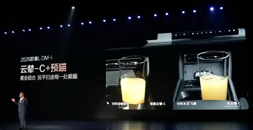坐进车内,新款秦L DM的内饰变化较为明显,例如取消了集成在中央岛台的电子档把,更换为市场主流的电子式怀挡。与此同时,在顶配车型上,新款秦L DM标配的手机无线充电面板的充电功率从老款的15W提升到50W,同时车机系统还支持无麦K歌和萌宠主题等等,这些无疑为用户提供了更丰富的情绪价值。不仅如此,新款秦L DM的顶配版本还带来了车载冰箱,同样可以提高用户的用车体验。