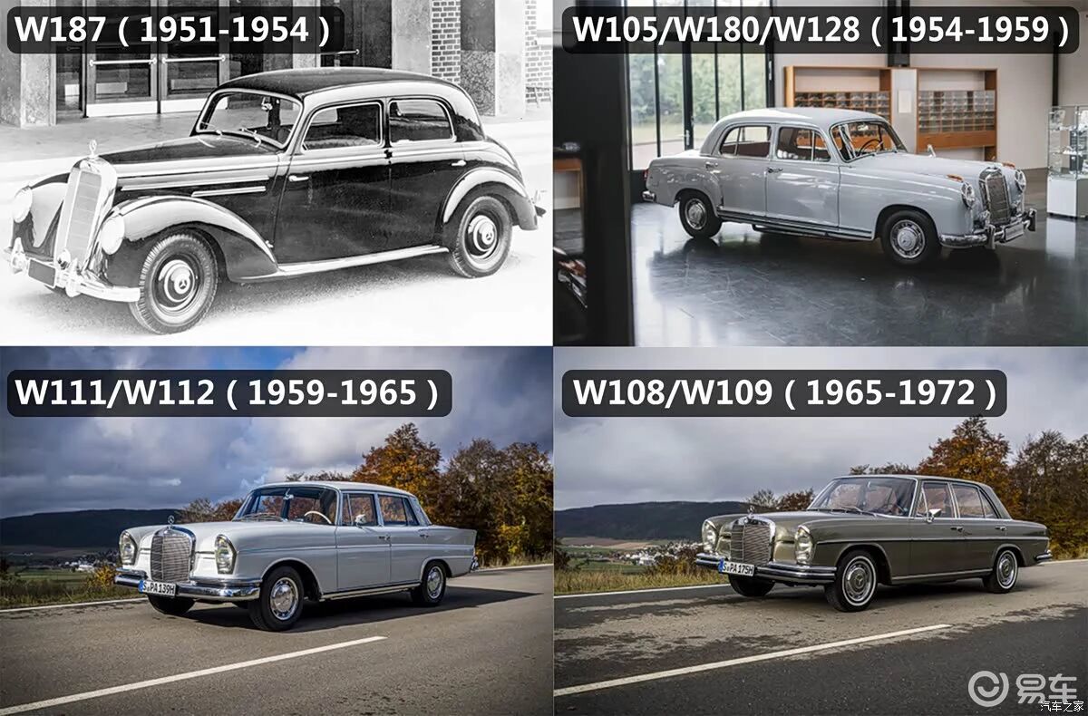 奔驰S级是一款历史悠久的车型,奔驰在1951年推出了奔驰300,代号W186,它象征着奔驰在二战后的重生,为后来的S级奠定了基础。1954年,奔驰推出“Ponton”系列(W180/W128),1959年,奔驰推出“Fintail”系列(W111/W112),这些车型搭载空气悬架、盘式刹车等先进技术,被许多人视为S级的真正精神始祖。