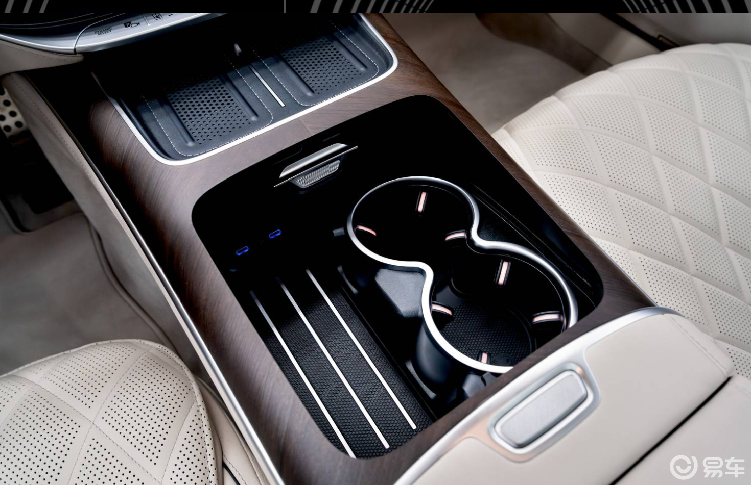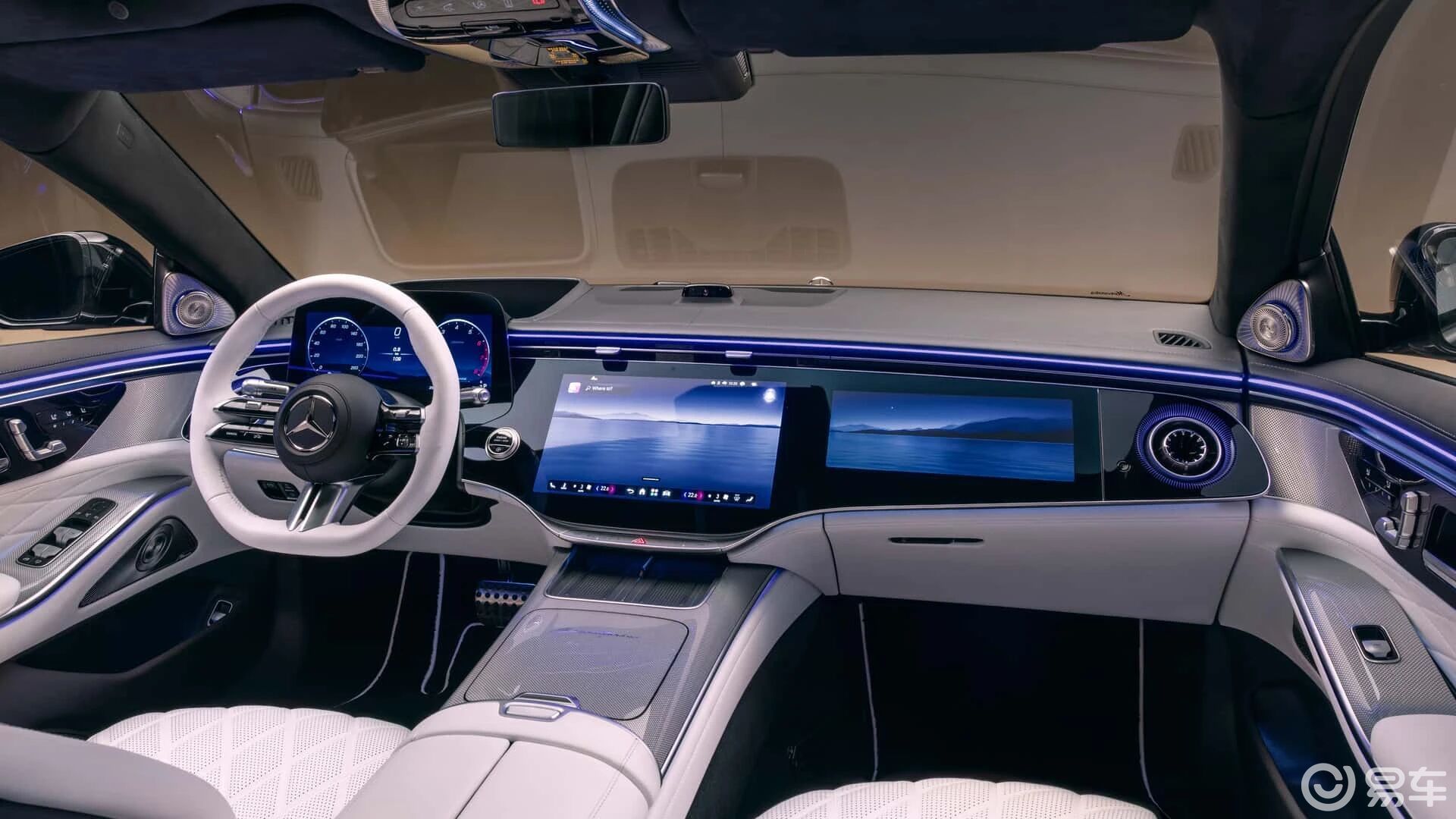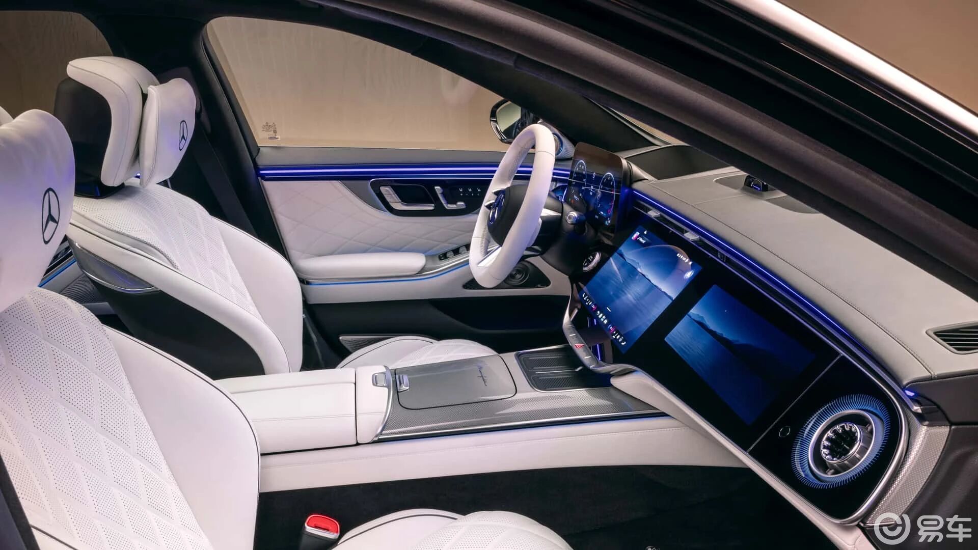 内饰方面,新款奔驰S级的变化也极大,前排仪表台全面焕新,整体式玻璃面板将14.4英寸中央触控屏与12.3英寸前排乘客显示屏融合为一整块“超级屏”。14.4英寸中央触控屏内置最新的MBUX智能人机交互系统,整合ChatGPT4o、微软必应以及谷歌Gemini等生成式AI技术。12.3英寸副驾娱乐屏可以听音乐、看视频或玩游戏等,注意力监测系统还可以适当调暗娱乐屏减少对驾驶员的干扰。全新多功能方向盘则融合物理按键、滚轮以及电容按键辅助驾驶员便捷操作,让操控更加精准自如,满足客户高频使用功能的需求。中控台集成了双手机无线充电面板及100瓦USB-C快充接口,满足多设备充电需求。