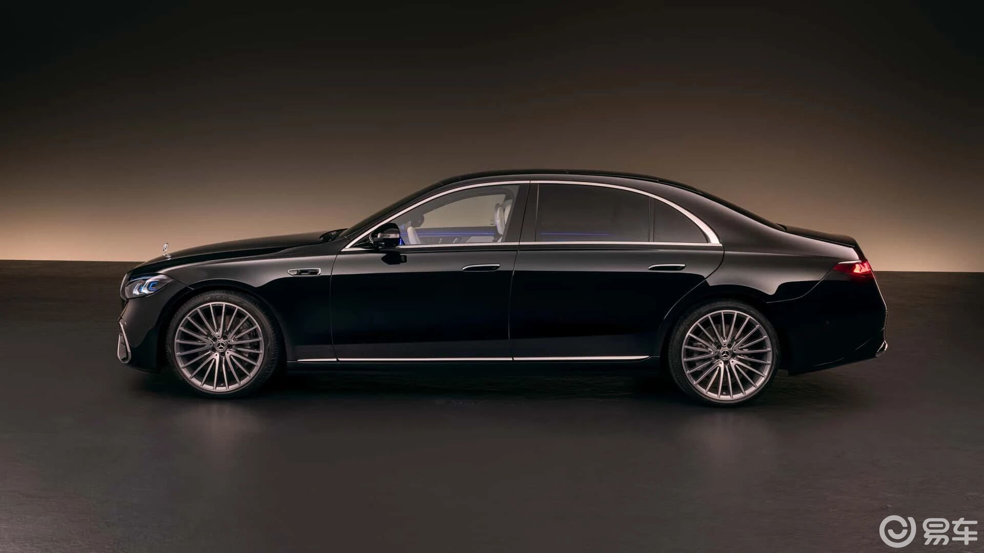 车身侧面,新款奔驰S级整体变化不大,配备全新样式的20英寸轮圈和后视镜外壳,翼子板处也增加了智驾传感器,打开车门后还能看到侧裙饰板内置的光感投影装置在车身两侧投影出三叉星徽迎宾光毯。尺寸方面,新车车身加长14mm(长轴距版本),长宽高分别为5304/1921/1503mm,轴距3216mm。车尾部分,新车换搭“三叉星徽”尾灯,并通过三枚星徽强化S级的身份象征。