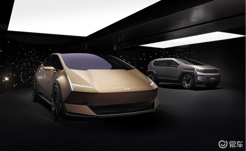而EARTH CONCEPT(地球)则以地球的生命力与韧性为灵感,将家用纯电 SUV重新定义为融合自然、科技与力量的守护空间。其车身采用极光之盾配色,一体化车身轮廓搭配锐利的水晶质感线条,呼应地球的地质风貌,辅以岩石质感护板、外露式螺栓等硬核细节,塑造强悍的越野气质;玻璃车顶与透明框架设计,则平衡了坚固与轻盈;锐利的渐变灯光系统勾勒出细微的“H”形品牌标识,暗藏现代汽车品牌基因;集成式车顶行李架与隐藏式双开启车门,提升了日常使用便利性,更有行星主题“彩蛋”设计,给人意想不到的惊喜。