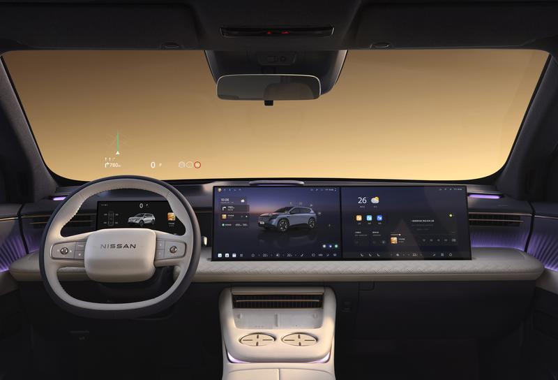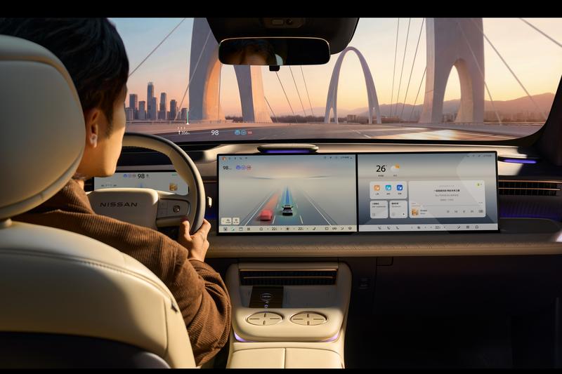 先说“彩电”。主流尺寸的双15.6英寸2.5K屏加上63英寸AR-HUD,视野够大又实用。座舱底层采用5nm的高通8295P芯片,算力冗余充足。操作系统为NISSAN OS2.0,基于讯飞星火AI大模型+DeepSeek-R1,支持四音区识别、多模态交互。
