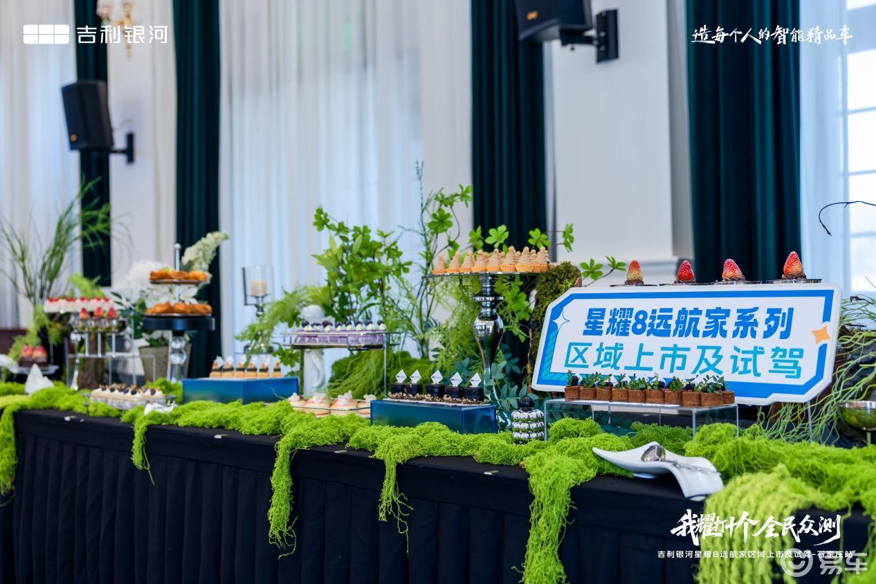 活动自14:00正式开启,来宾在2名专业礼仪人员引导下完成签到分组,佩戴专属彩色试驾手环后,率先进入静态品鉴区近距离感受星耀8远航家系列的设计魅力。定制化茶歇区同步开放,提供精致甜点、水果及饮品,为整场活动营造了轻松愉悦的交流氛围。