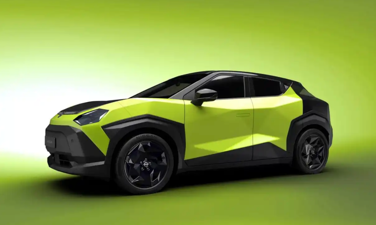 从官图看,全新JUKE EV的外观变化非常大。以前那个圆滚滚的造型不见了,取而代之的是遍布全车的平直线条和锋利的几何切面,整体姿态非常犀利,像是一台直接量产的概念车。