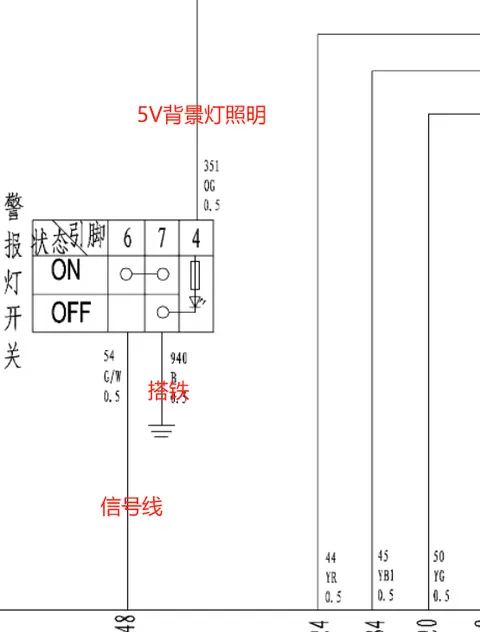 既然开关背景灯开小灯会亮,那我们就先拿它验验后勤保障是否正常。万用表调到电压档,红表笔搭背景灯电源线,黑表笔稳稳接搭铁线,打开小灯开关,万用表稳稳显示5V左右电压,关掉小灯,电压立马归零!
